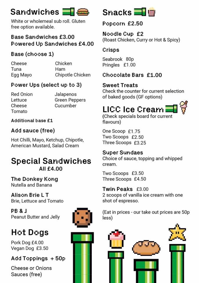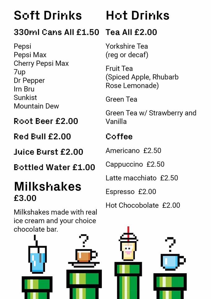 The cafe offer a wide range of snacks and drinks, as well as a retro video game lounge (Additional fee for using the consoles). and is a 10-15 min walk from York Train Station, located just behind the minster.