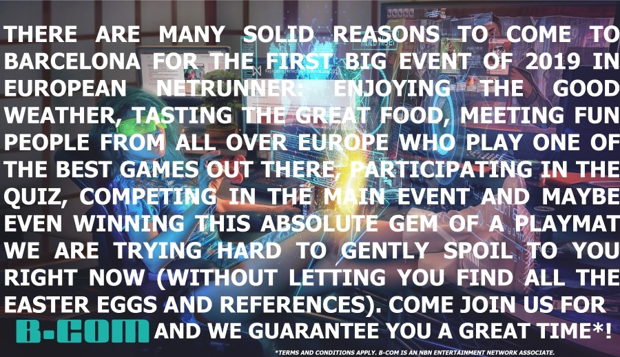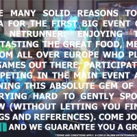 For those arriving on Friday, we’ll be hosting a Netrunner-themed quiz and there will be prizes! Pre-registration for this event is not necessary, anyone who shows up can participate.