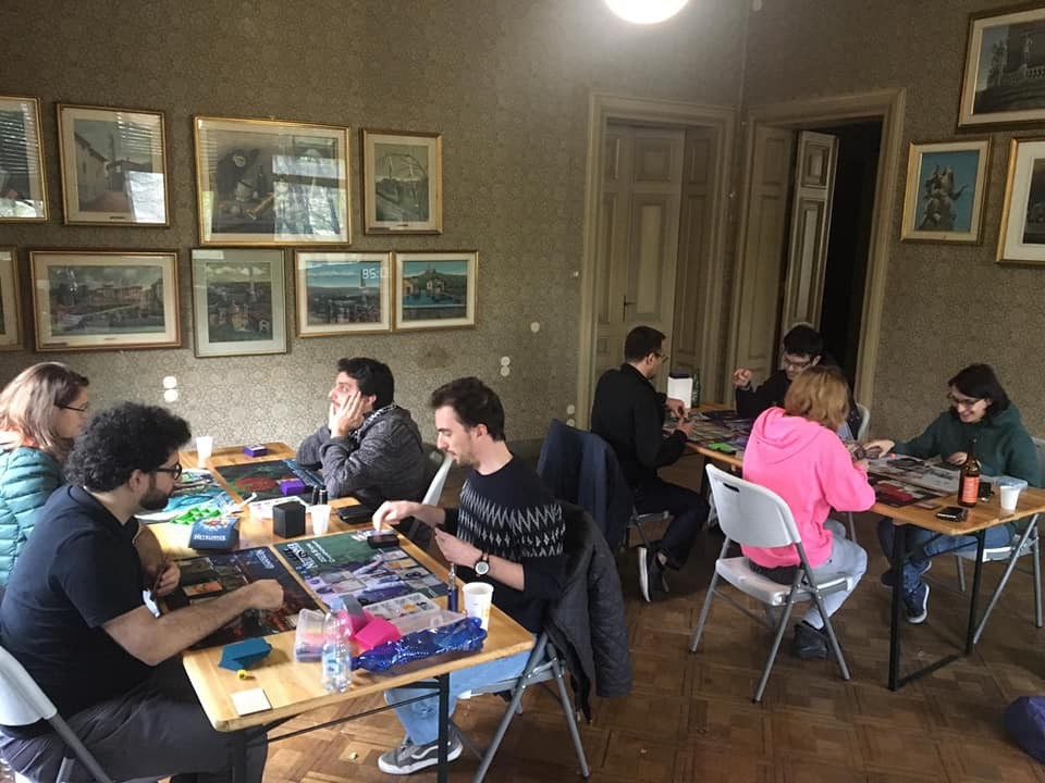 C'è possibilità di pranzare in loco con pizza o kebab, comunque potete portare quello che volete (è un'associazione ludica non un negozio)