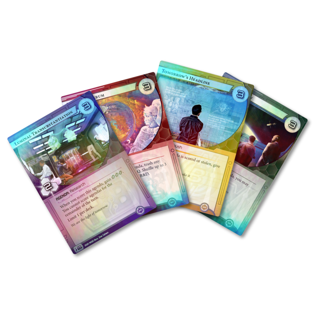 | 18 points: | 2x Foil Limit 1 Per Deck Agenda (Original Frames/Art) Foil Promos |