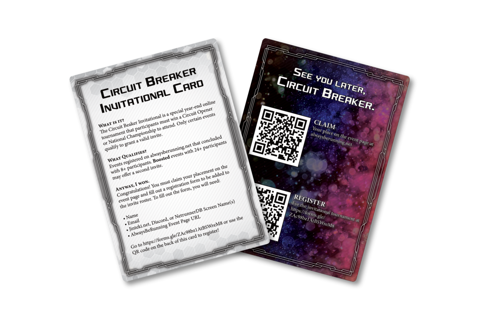 Winner: Invitation to the Circuit Breaker Invitational Championship. (Details forthcoming, provisionally to take place Q4 2022. Only valid for events with 8 players or more.)