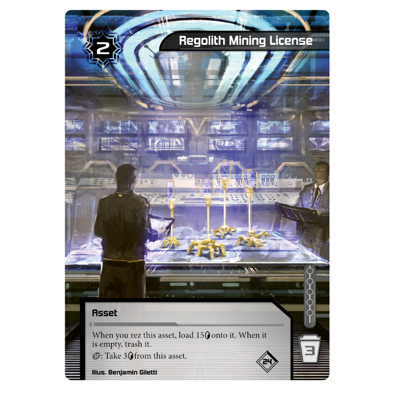 | 8 playsets: | Regolith Mining License (Art by Benjamin Giletti) extended alt card |