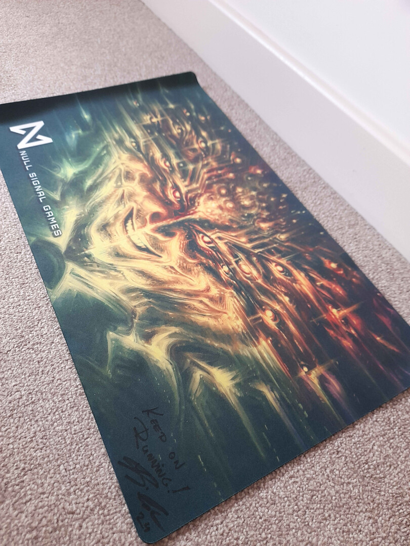 Top 1: Holo-man playmat, illustrated and signed by Liiga Smilshkalne