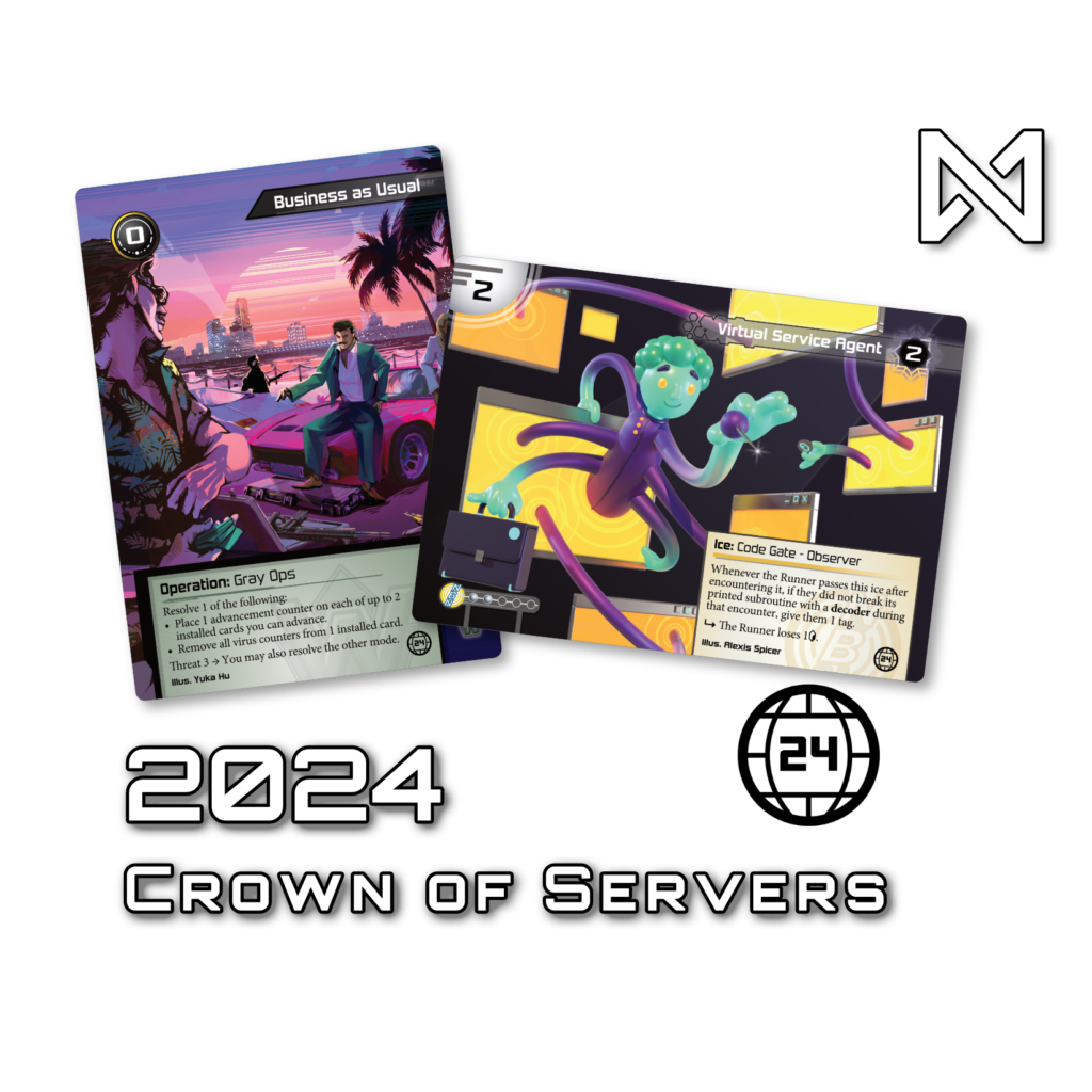 Teams will be required to represent three distinct Runner factions (Anarch, Criminal, Shaper, Nova Initiumia) with no duplicates on the team. Teams will also need to represent 3 distinct Corp factions (Haas Bioroid, Jiteki, NBN, Weyland, Ampère) with no duplicates.